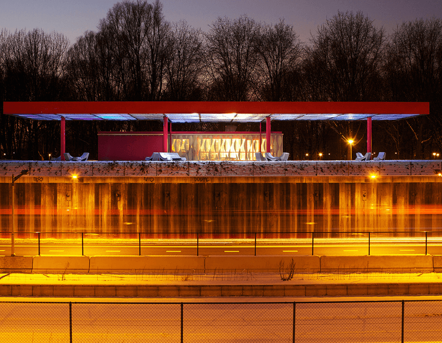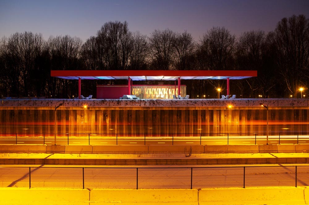 Each kiosk was designed with four equally appealing facades. Sunshades, relief patterns, and integrated lighting were incorporated so that every side of each kiosk presents an inviting face to the city.