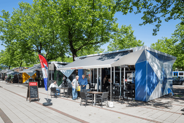 The renovated Rooswijck Shopping Square now has a clear layout with defined walking routes. By positioning the kiosks more strategically, the design creates a stronger sense of space, turning the plaza into a unified and cohesive shopping area.