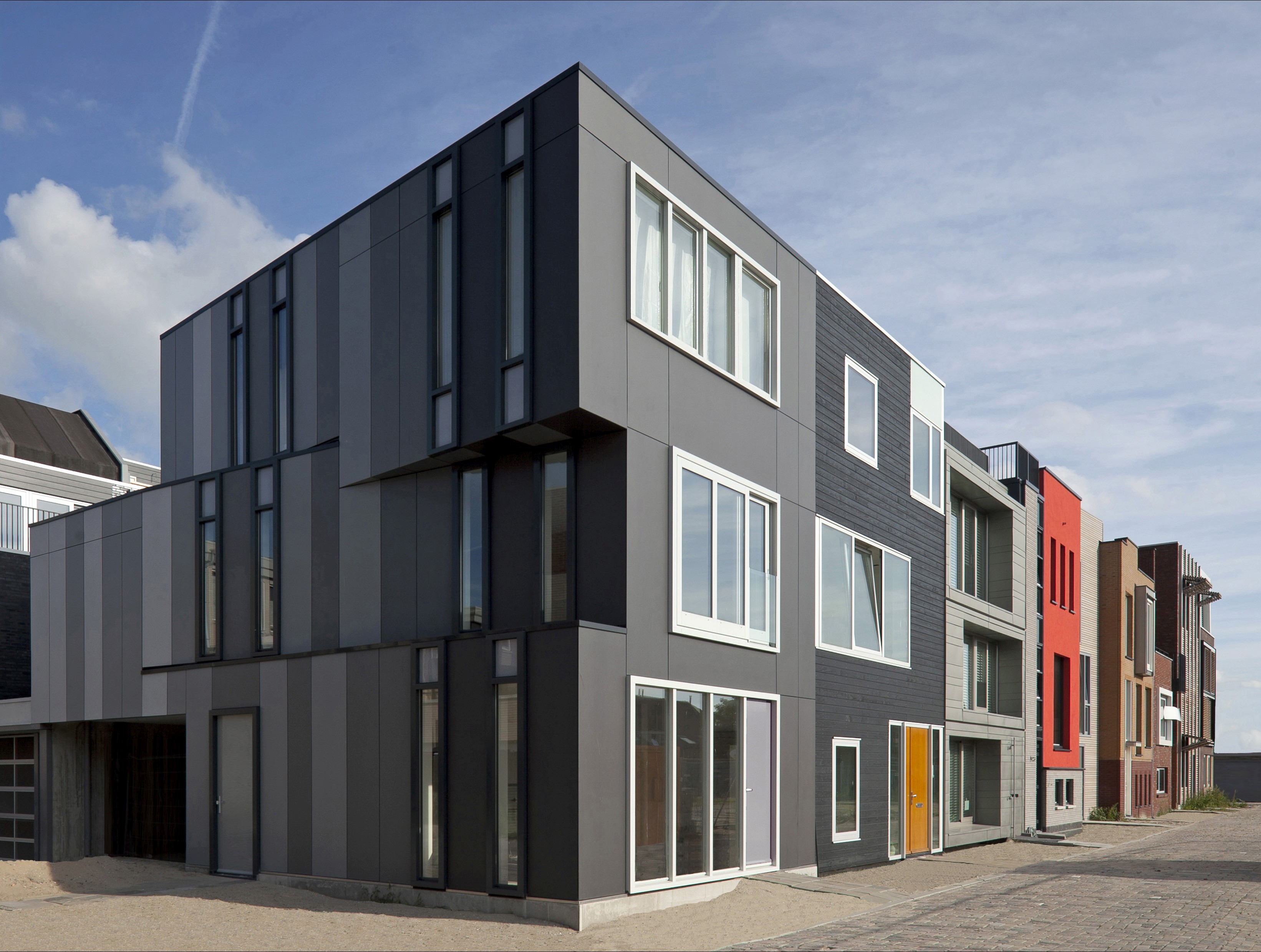 This approach allowed for a densely built yet green and low-traffic neighbourhood. A shared coordinator, contractor, and group of advisors worked on each building block, after which each plot owner was free to design their own house according to personal needs and wishes.